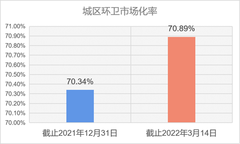 環(huán)境司南數(shù)據(jù)監(jiān)測顯示,截止2022年3月14日,全國完成城區(qū)(首輪)環(huán)衛(wèi)市場化改革的區(qū)縣增至2022個(gè),與2021年年底相比,增加16個(gè)區(qū)縣,城區(qū)環(huán)衛(wèi)市場化率提升至70.89%。 截止2021年12月31日,全國完成城區(qū)(首輪)環(huán)衛(wèi)市場化改革的區(qū)縣數(shù)量為2006個(gè),城區(qū)環(huán)衛(wèi)市場化率為70.34%。 ...