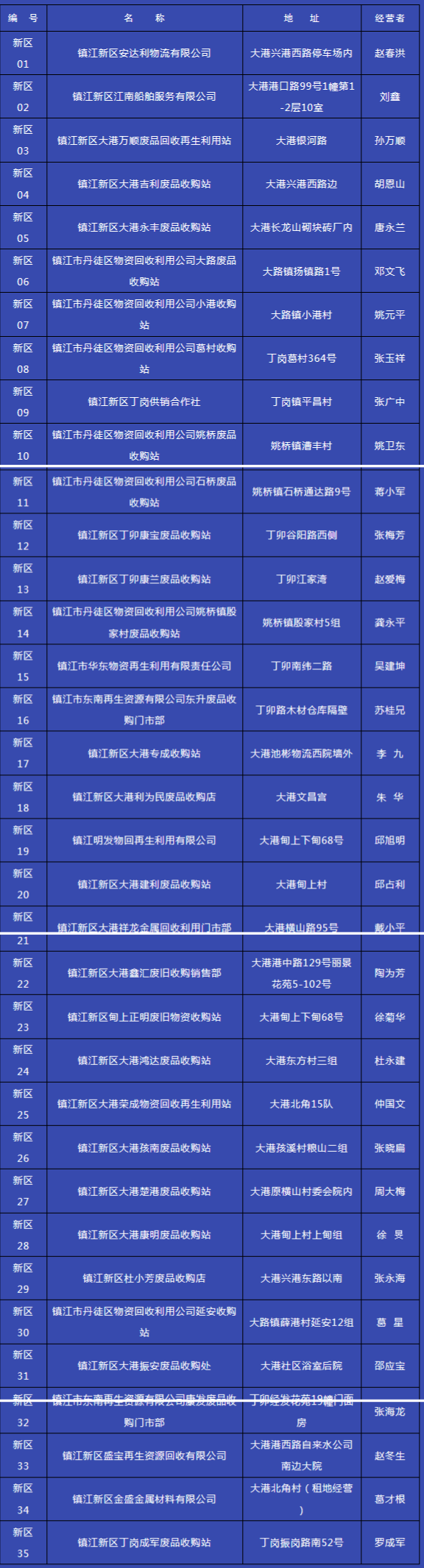 根據(jù)《江蘇省特種行業(yè)治安管理?xiàng)l例》規(guī)定,對生產(chǎn)性收購業(yè)實(shí)行名錄管理制度。符合條件的,由所在地市、縣人民政府公安機(jī)關(guān)列入名錄,并向社會公布。現(xiàn)將己列入名錄的35家生產(chǎn)性業(yè)公布如下:期間,上述生產(chǎn)性廢舊金屬收購業(yè)的經(jīng)營名稱、地址、經(jīng)營者等發(fā)生變更的,應(yīng)及時(shí)到公安機(jī)關(guān)進(jìn)行報(bào)備。市公安局新區(qū)分局二O一八年十...