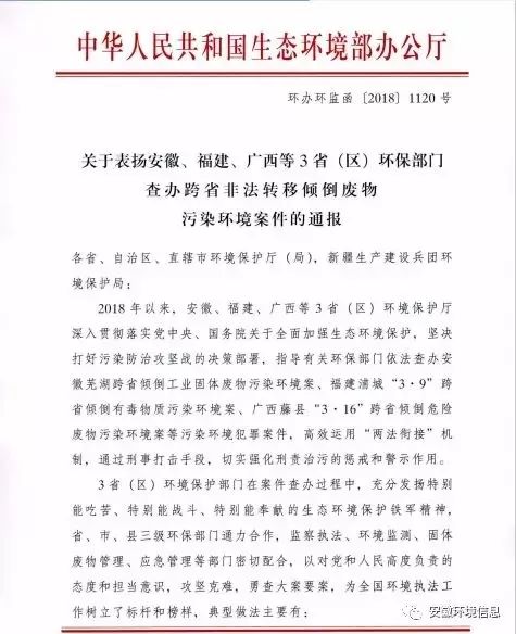 因指導(dǎo)有關(guān)環(huán)保部門依法查辦蕪湖跨省傾倒污染環(huán)境案,為全國環(huán)境執(zhí)法工作樹立了標(biāo)桿和榜樣,近日,安徽環(huán)保廳被生態(tài)環(huán)境部辦公廳通報(bào)表揚(yáng)。通報(bào)指出,2018年以來,安徽、福建、廣西等3省(區(qū))環(huán)境保護(hù)廳深入貫徹落實(shí)黨中央、國務(wù)院關(guān)于全面加強(qiáng)生態(tài)環(huán)境保護(hù),堅(jiān)決打好污染防治攻堅(jiān)戰(zhàn)的決策部署,指導(dǎo)有關(guān)環(huán)保部門依法...