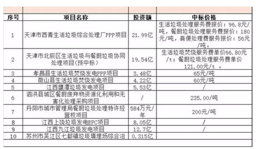 摘要:在業(yè)界一片蕭蕭寒風(fēng)的大環(huán)境下,光大國際近兩月的表現(xiàn)依然十分亮眼,不僅中標(biāo)勢(shì)頭強(qiáng)勁,還先后有一波項(xiàng)目開建和投入運(yùn)營。對(duì)此,進(jìn)行了簡單盤點(diǎn),如有遺漏,歡迎補(bǔ)充。前不久,天津同期放出的三大垃圾綜合處理項(xiàng)目中標(biāo)結(jié)果相繼出爐,光大國際一舉拿下兩,這兩個(gè)項(xiàng)目累積投資額41.5億元,涉及的建設(shè)內(nèi)容包括:、餐...