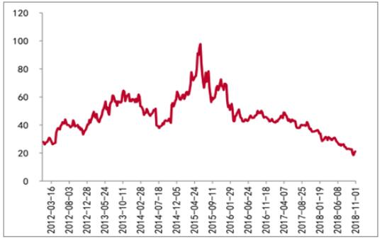 2018Q3環(huán)保板塊整體實(shí)現(xiàn)營業(yè)收入1108.3億,同比增加12.5%,增速下滑10.6pct,整體歸母凈利潤為118.9億,同比減少17.8%,環(huán)保板塊收入端增速出現(xiàn)下滑趨勢(shì),而利潤端則首次出現(xiàn)負(fù)增長。2018Q3環(huán)保板塊整體毛利率為31.4%,同比減少1.1pct,毛利率下降或與上游原材料成本提...