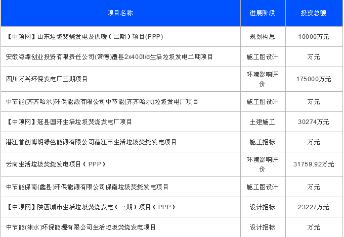 中項(xiàng)網(wǎng)獨(dú)家授權(quán)北極星固廢網(wǎng)發(fā)布最新垃圾處理項(xiàng)目(2019年1月14日更新),其中包括垃圾填埋場(chǎng)項(xiàng)目、餐廚垃圾處理項(xiàng)目、生活垃圾中轉(zhuǎn)站建設(shè)項(xiàng)目等。具體內(nèi)容如下: