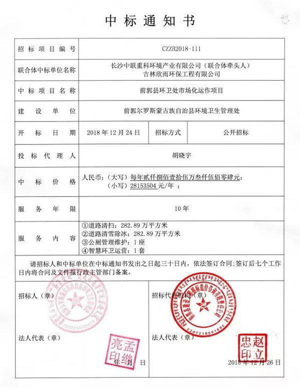 2019年辭舊迎新之際,中聯(lián)環(huán)境城市服務項目連中四元,喜報頻傳。新年前后,中聯(lián)環(huán)境連續(xù)斬獲吉林省前郭項目、江西省安義項目、江西省蓉江項目3個城市環(huán)境服務運營項目,同時某城市環(huán)境綜合PPP項目已處于預中標公示階段。預計新增服務人口302萬人,新增年化合同1.12億元,新增合同總額近19億元。吉林省前郭...