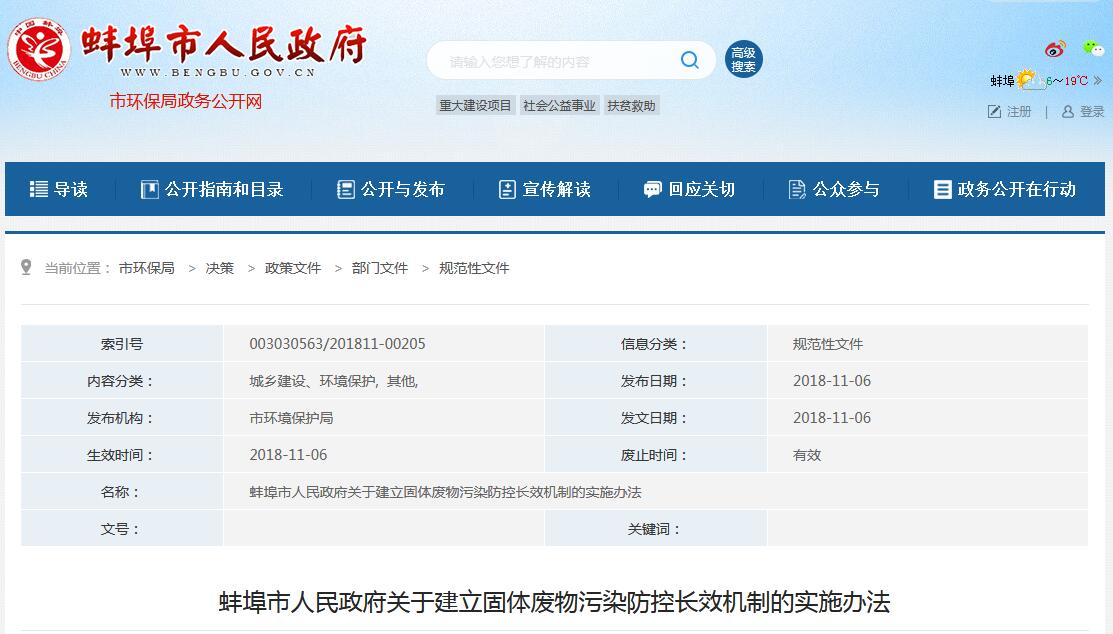 日前,蚌埠市發(fā)布了關(guān)于建立固體廢物污染防控長(zhǎng)效機(jī)制的實(shí)施辦法,詳情如下:各縣(區(qū))人民政府,市政府各部門、各直屬機(jī)構(gòu)、駐蚌有關(guān)單位:為貫徹落實(shí)《安徽省人民政府關(guān)于建立固體廢物污染防控長(zhǎng)效機(jī)制的意見》(皖政〔2018〕51號(hào))、《安徽省環(huán)境保護(hù)條例》、《安徽省實(shí)施〈中華人民共和國(guó)固體廢物污染環(huán)境防治法...