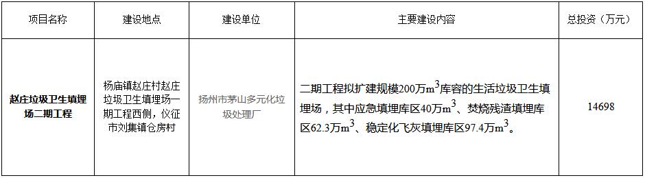日前,揚州市發(fā)改委發(fā)布了關(guān)于“趙莊垃圾衛(wèi)生填埋場二期工程”受理情況的公示,詳情如下:市發(fā)改委關(guān)于“趙莊垃圾衛(wèi)生填埋場二期工程”受理情況的公示根據(jù)《行政許可法》、《江蘇省企業(yè)投資項目核準和備案管理辦法》等有關(guān)文件規(guī)定,現(xiàn)將“趙莊垃圾衛(wèi)生填埋場二期工程”情況予以公示并征求公眾意見,公示期7天,自2018...