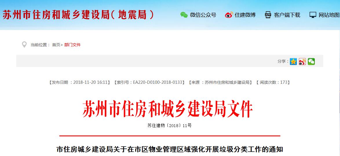 日前,蘇州市住建局發(fā)布了關(guān)于在市區(qū)物業(yè)管理區(qū)域強(qiáng)化開展垃圾分類工作的通知,詳情如下:各區(qū)住建局,姑蘇區(qū)住建委,蘇州工業(yè)園區(qū)規(guī)建委;各物業(yè)服務(wù)企業(yè):蘇州是全國首批26個生活垃圾分類示范城市(區(qū))之一,推進(jìn)垃圾分類,既是衡量城市文明程度的重要指標(biāo),也是建設(shè)美麗宜居名城的內(nèi)在要求。去年,市政府辦公室印發(fā)了...