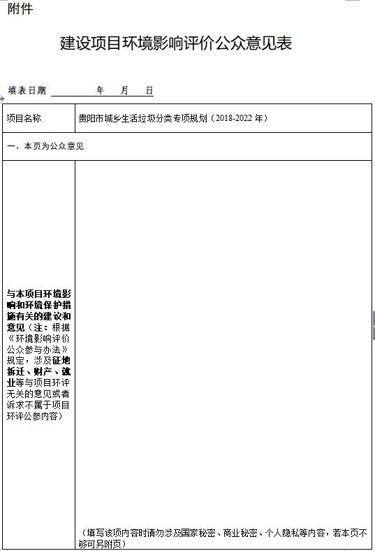 貴陽市城鄉(xiāng)生活垃圾分類專項規(guī)劃(2018-2022年)環(huán)境影響評價公眾參與信息公示根據(jù)《中華人民共和國環(huán)境影響評價法》、《環(huán)境影響評價公眾參與辦法》(生態(tài)環(huán)境部令 第4號)規(guī)定,現(xiàn)就貴陽市城鄉(xiāng)生活垃圾分類專項規(guī)劃(2018-2022年)環(huán)境影響評價信息進行第一次公示,歡迎公眾積極參與并提出寶貴意見。...