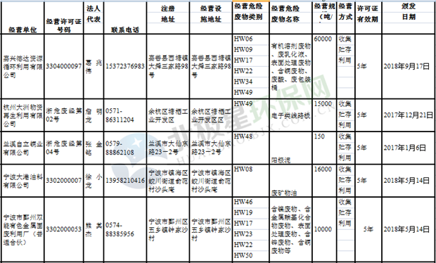 日前省生態(tài)環(huán)境廳發(fā)布了《浙江省經(jīng)營(yíng)單位名單(2018年10月26日更新)》,涉及企業(yè)255家,并附有聯(lián)系電話。具體內(nèi)容如下: