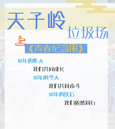 導(dǎo)讀:本文記錄了杭州天子嶺30年來的風(fēng)雨變化,也記錄了工作人員30年來的辛勤付出。照片及文字素材來源于固廢公司張棟鵬 女士。正文:30年前的我們帶著青春年少的迷茫踏進了你這片熱土我們愿和你一起把杭城打造得更加清秀我們愿和你一起為市民提供更整潔的環(huán)境從此以后你深深烙進我們的生命讓我們甘愿為你守候在青春...