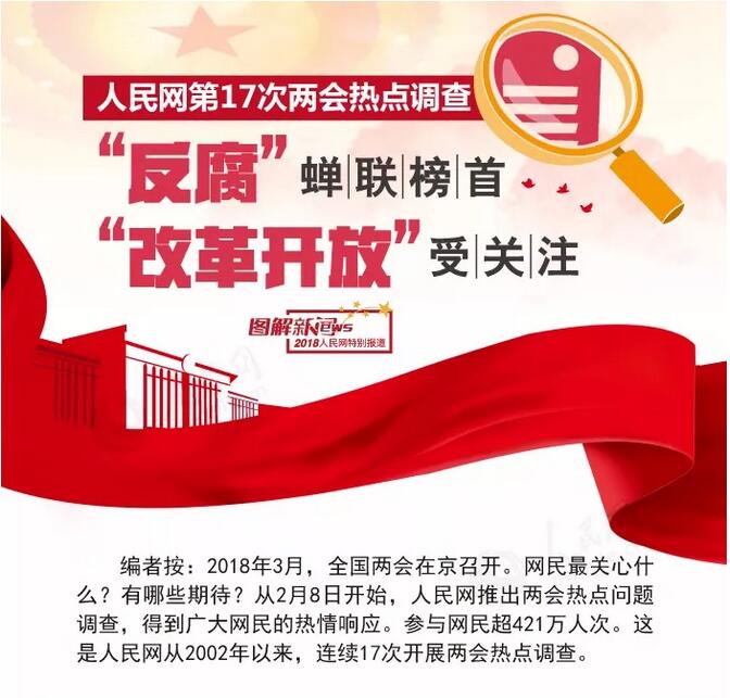 2018年3月,全國兩會將在北京召開,網(wǎng)民最關(guān)心什么?有哪些期待?而隨著的頻繁出臺,人民對碧海藍(lán)天的渴望更加強(qiáng)烈,問題也愈發(fā)引起人民的關(guān)注。人民網(wǎng)推出的兩會熱點(diǎn)調(diào)查中,“環(huán)境保護(hù)”進(jìn)入前十名榜單,成為備受關(guān)注的熱點(diǎn)問題,而且其于2014-2018年五次上榜。 來源:人民網(wǎng)圖解新聞